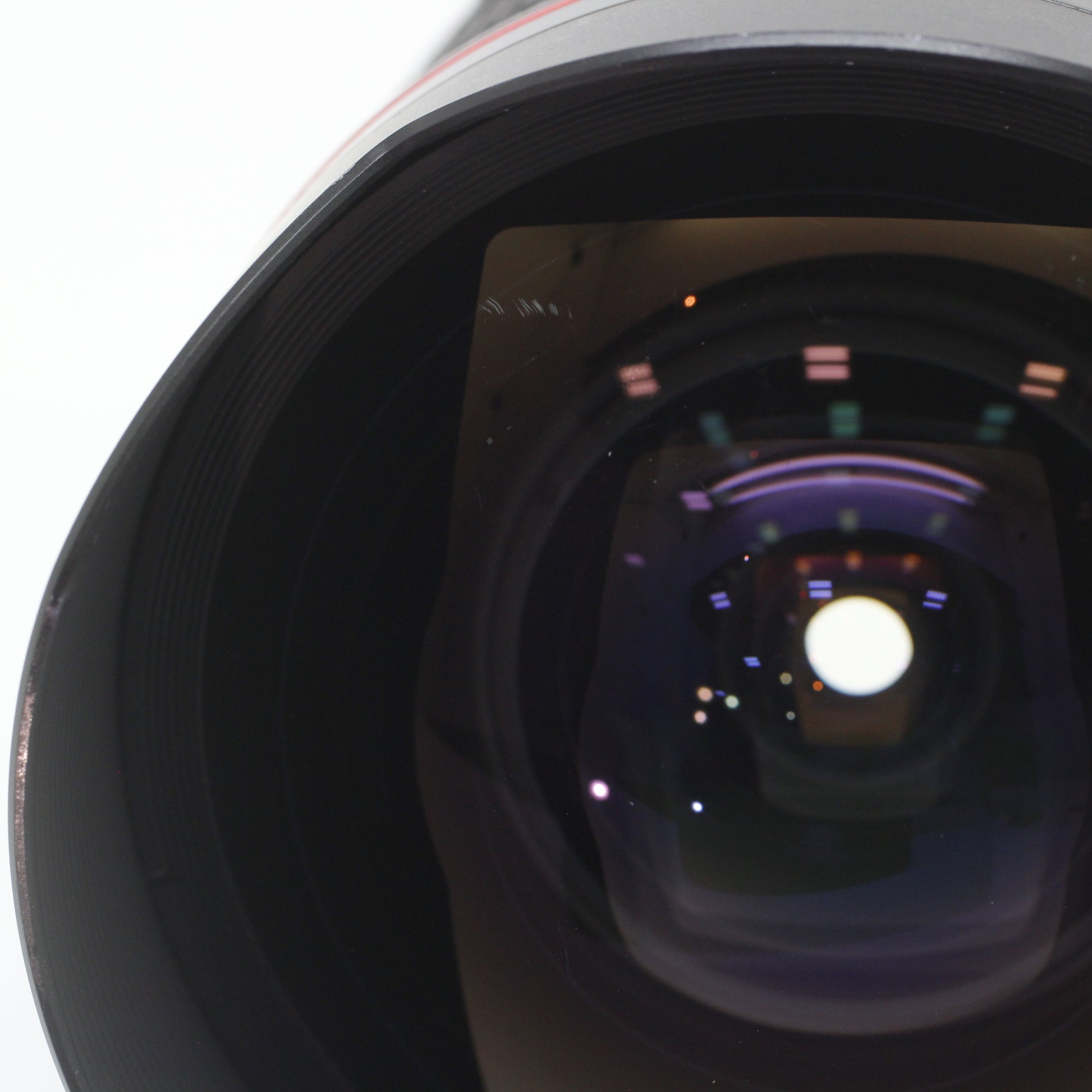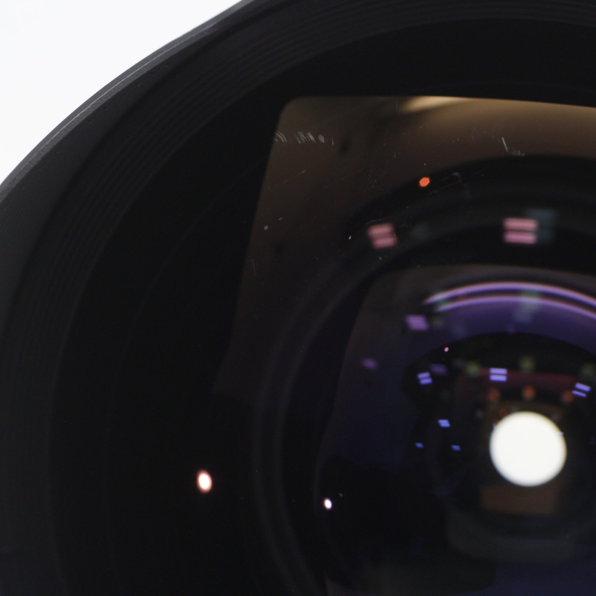 レンズ前玉にキズあり、一部白いコーティング剥がれのように見えます