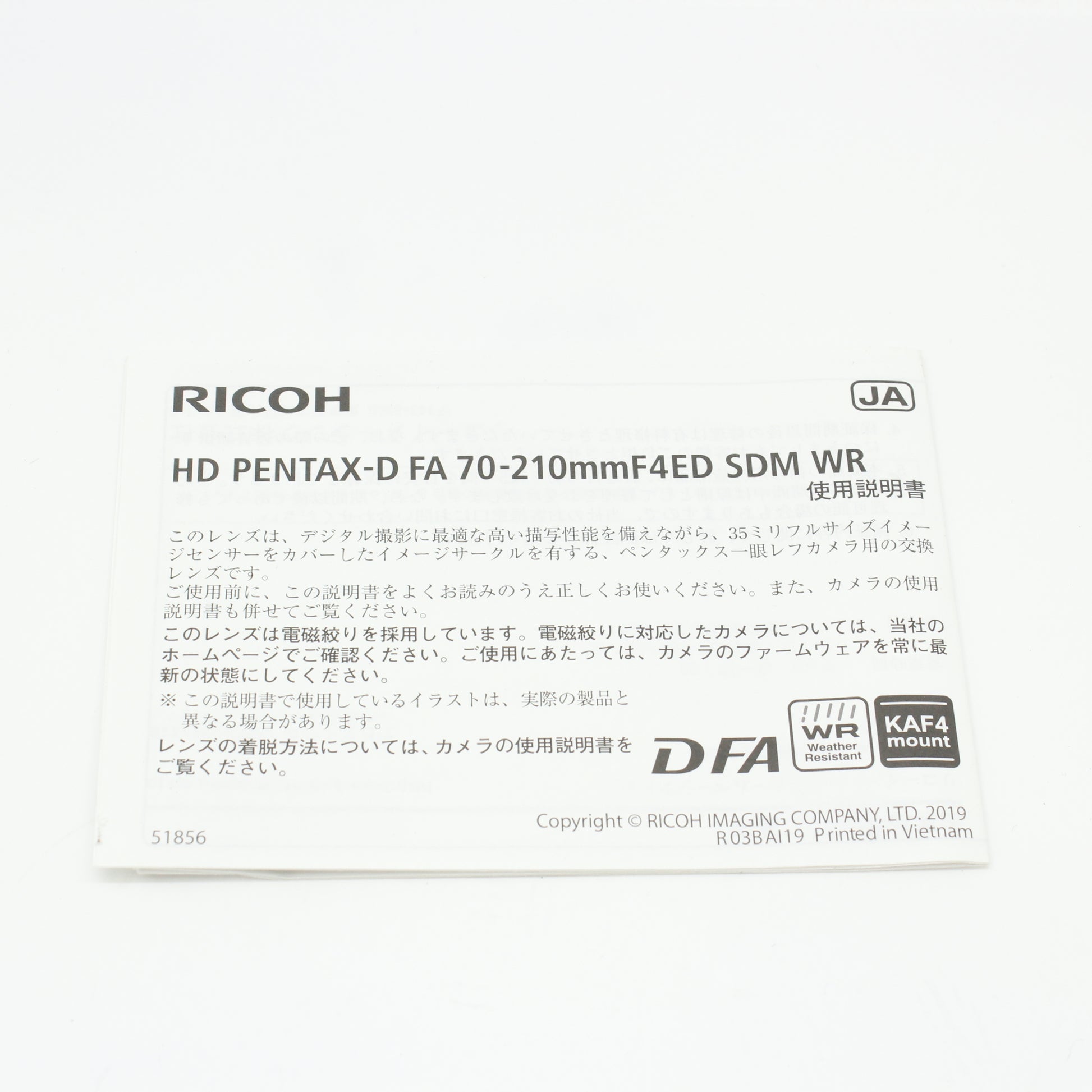 HD PENTAX D FA 70-210mm F4 SDM WR
