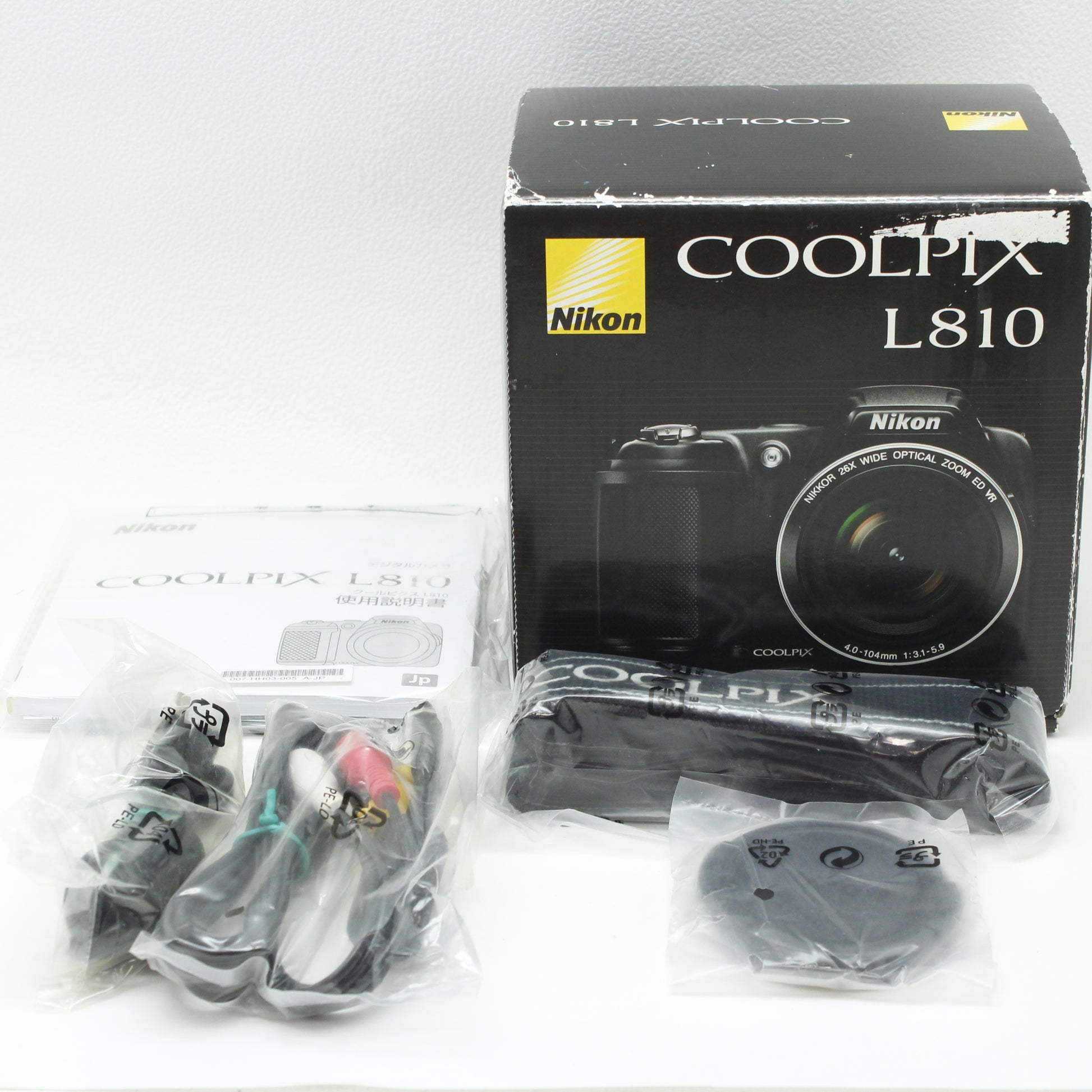 レンズキャップ、ストラップ、外箱、各種ケーブル